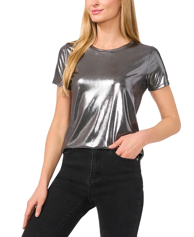 CeCe Women's Metallic Shine Short Sleeve T-Shirt