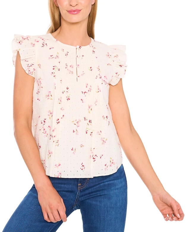 CeCe Women's Floral Print Flutter-Sleeve Blouse