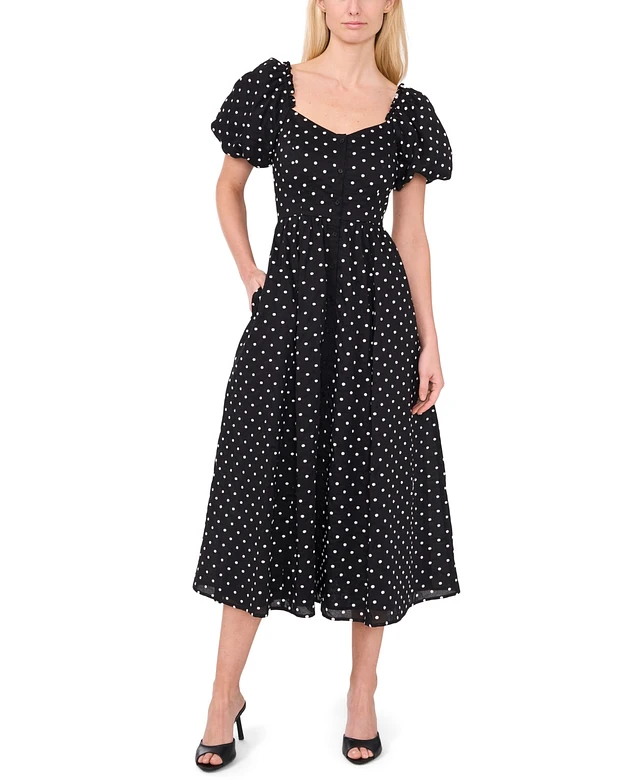 CeCe Women's Square-Neck Puff-Sleeve Tie-Back Maxi Dress