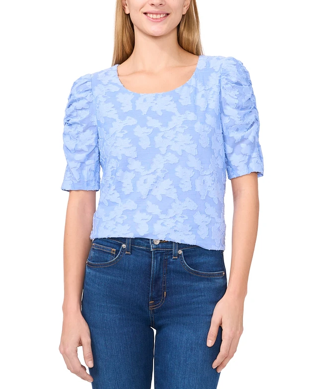 CeCe Women's Round-Neck Ruched Elbow-Sleeve Top