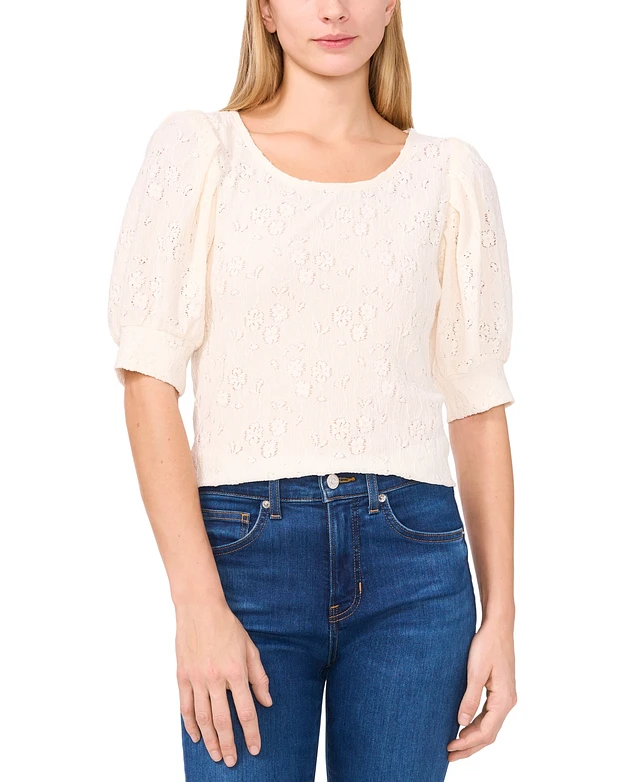 CeCe Women's Crewneck Puff 3/4-Tie Sleeve Knit Top