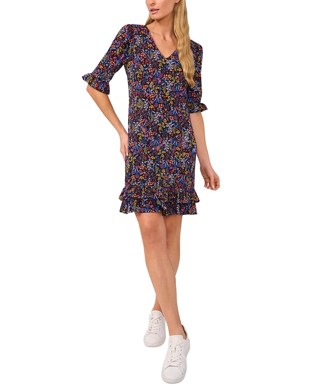 CeCe Women's V-Neck Ruffled Ditsy-Print Shift Dress