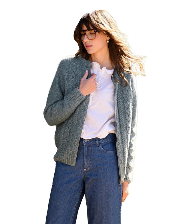 Celtic & Co. Women's Wool Zip Cardigan with Cable Knit