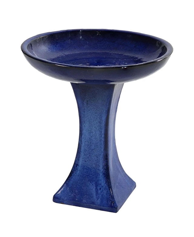 Ceramic Bird Bath for Outside - 16" H - Uv- and Frost-Resistant - Pedestal Bird Bath - Blue Glazed Bowl - Blue Glaze Finish