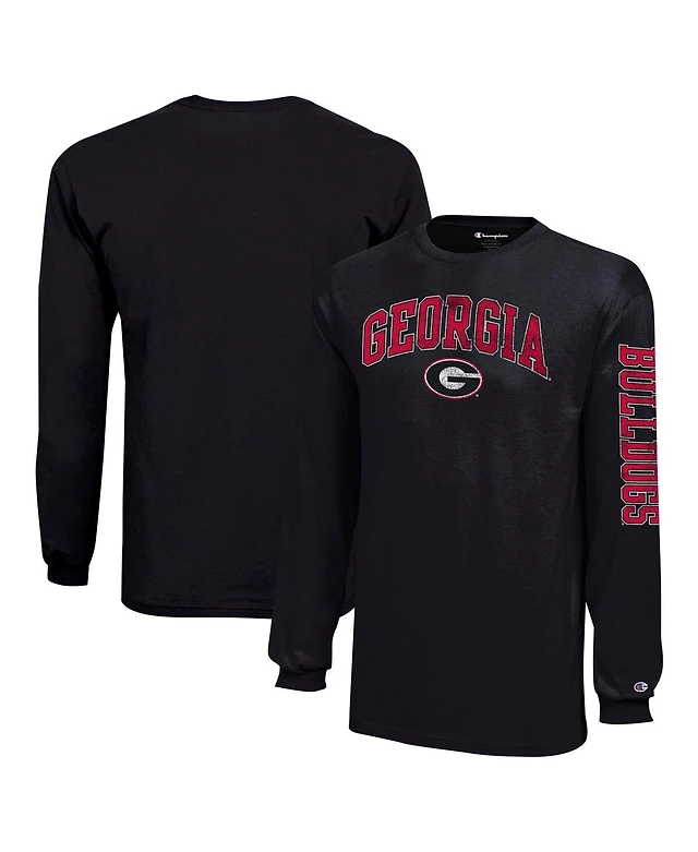 Champion Big Boys and Girls Black Georgia Bulldogs Distressed Arch Over Logo Long Sleeve T-Shirt