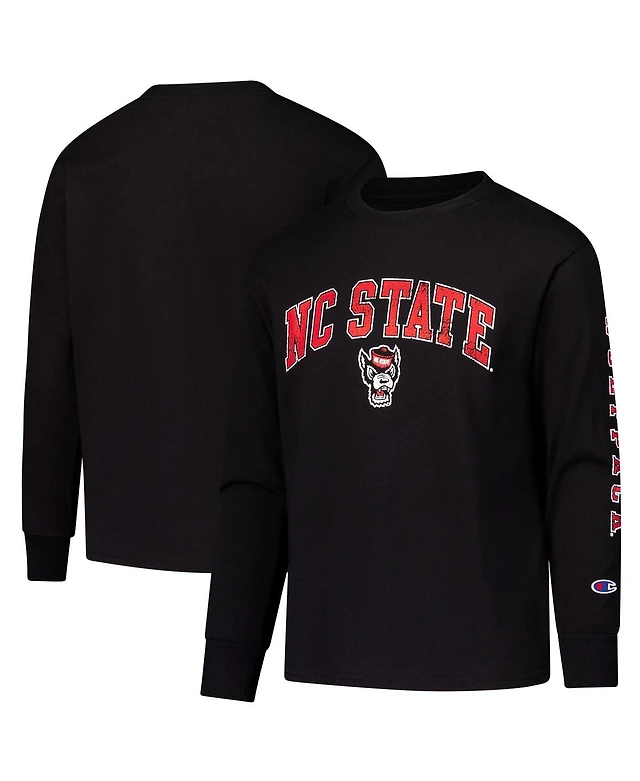 Champion Big Boys and Girls Black Nc State Wolfpack Distressed Arch Over Logo Long Sleeve T-Shirt