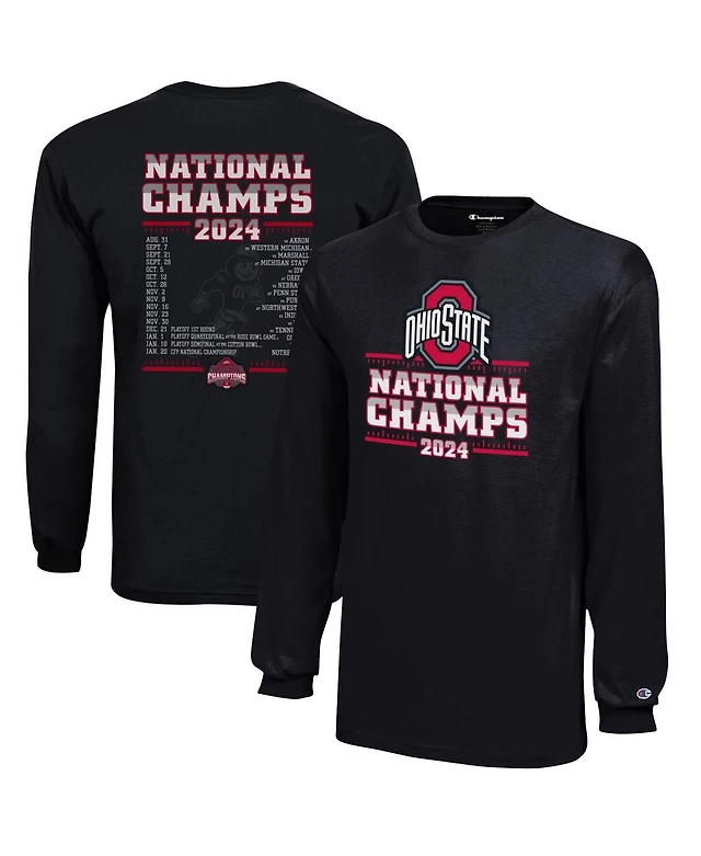 Champion Big Boys and Girls Black Ohio State Buckeyes College Football Playoff 2024 National Champions Schedule Long Sleeve T-Shirt
