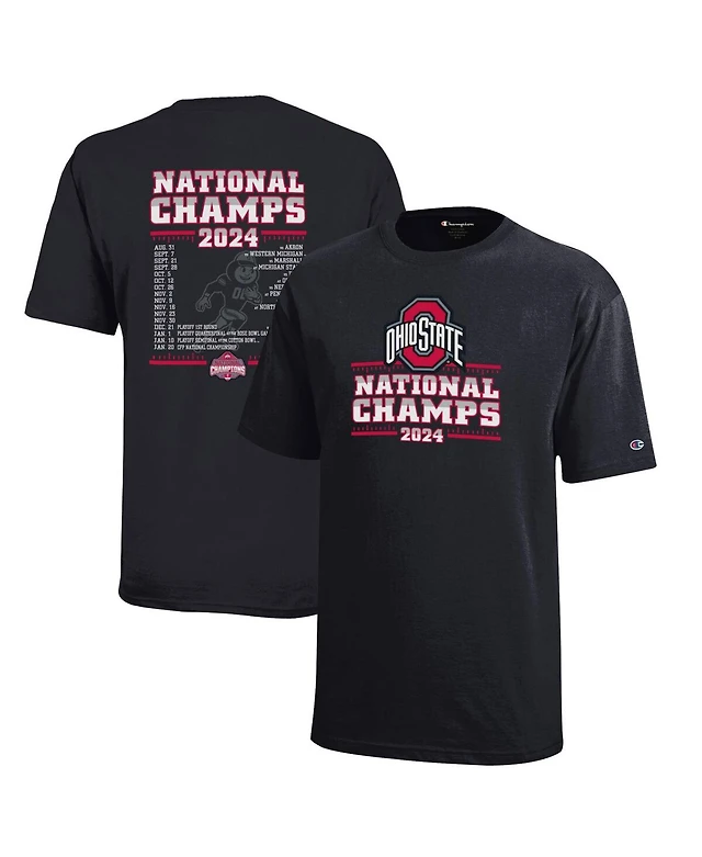 Champion Big Boys and Girls Black Ohio State Buckeyes College Football Playoff 2024 National Champions Schedule T-Shirt