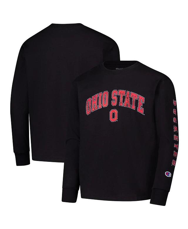 Champion Big Boys and Girls Black Ohio State Buckeyes Distressed Arch Over Logo Long Sleeve T-Shirt