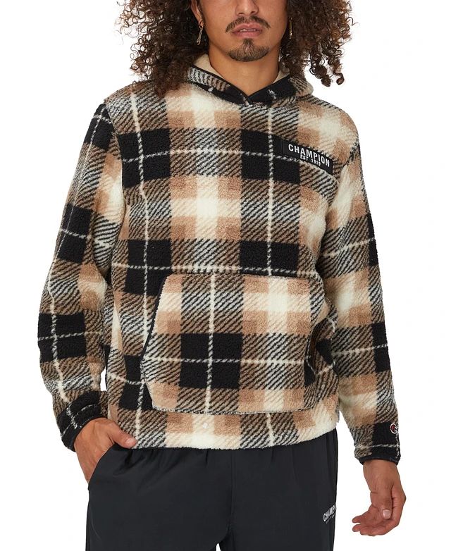 Champion Men's Plaid Faux-Shearling Pullover Hoodie