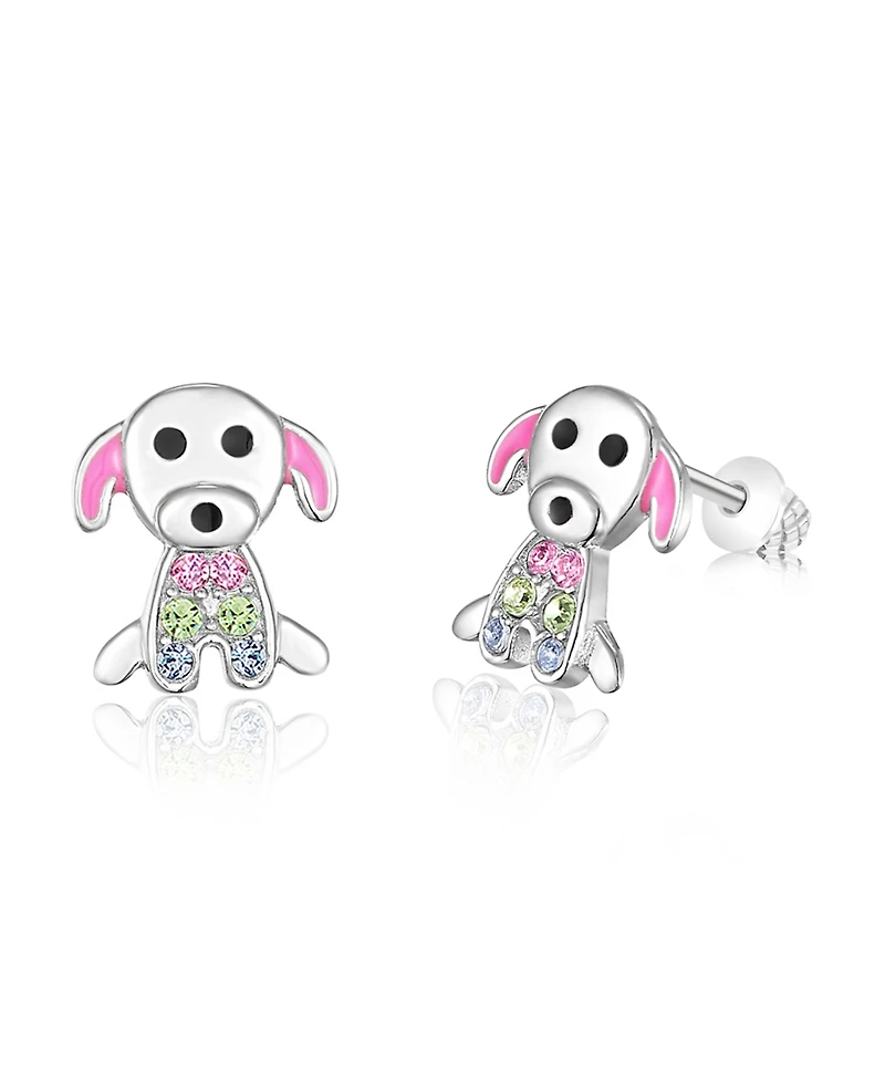 Chanteur/Girl/Dog Multi-color Crystal White Gold Palladium Plating Screwstud Earring in Ponce, PR
