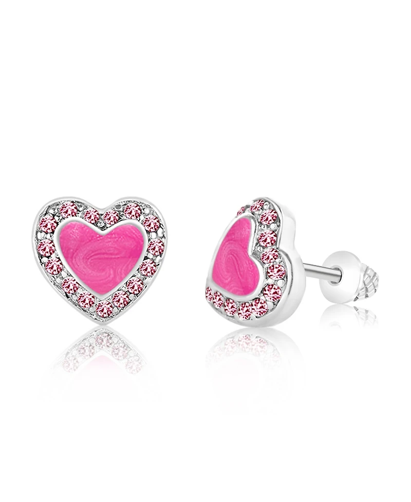 Chanteur/Girl/Heart Enamel Crystal White Gold Palladium Plating Screwstud Earring in Ponce, PR