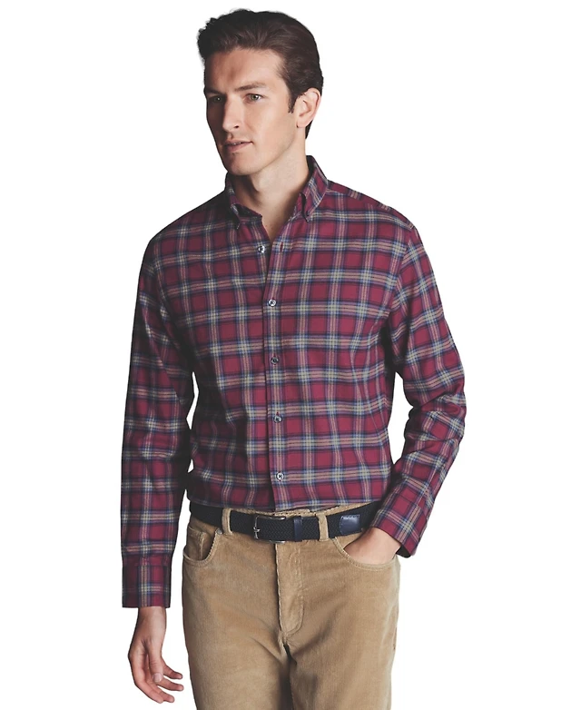 Charles Tyrwhitt Men's Slim Fit Button-Down Collar Brushed Flannel Check Shirt