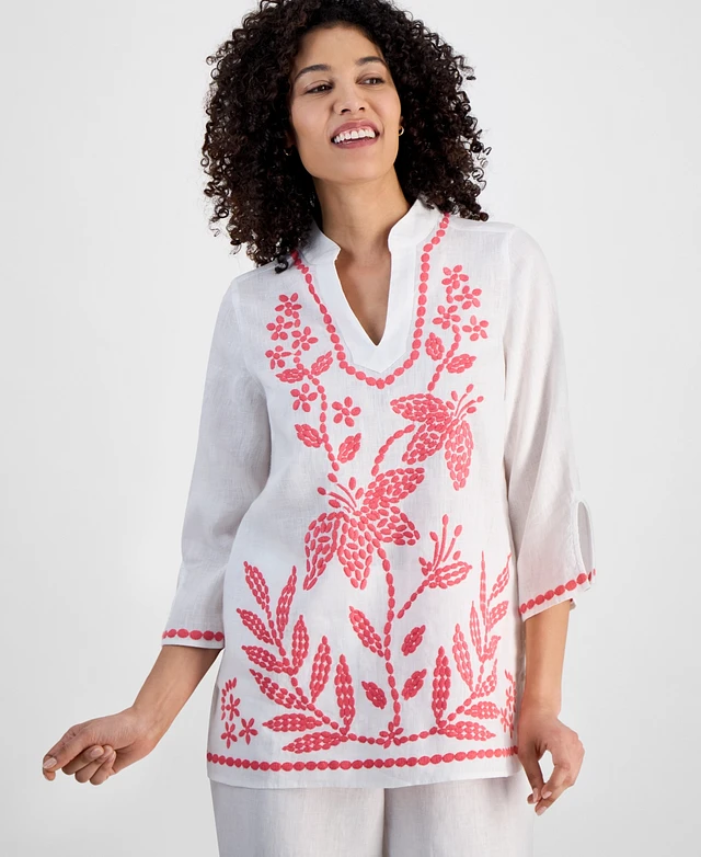 Charter Club Petite 100% Linen Embroidered Tunic, Exclusively at Macy's