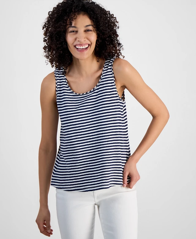 Charter Club Petite Linen-Blend Striped Bead-Trim Scoop-Neck Top, Exclusively at Macy's