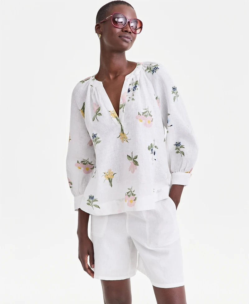 Charter Club Women's 100% Linen Split-Neck Top, Macy's Exclusive
