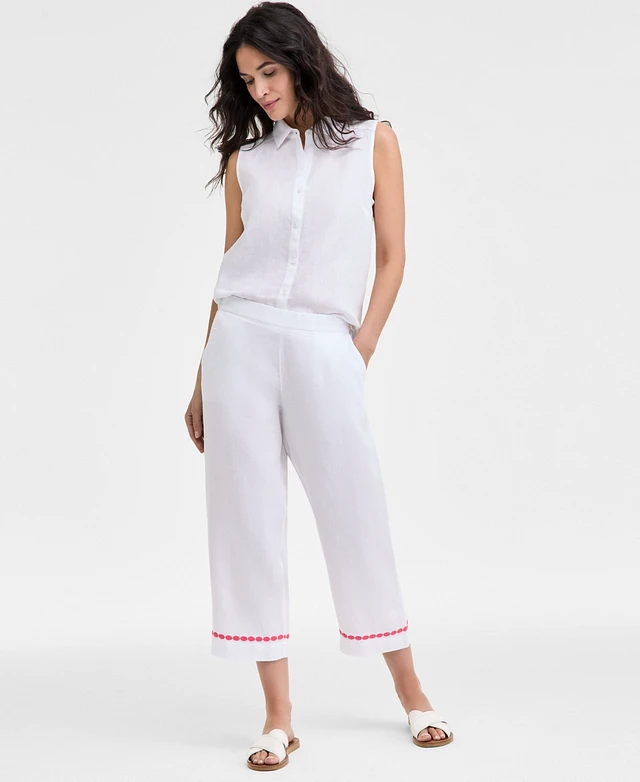 Charter Club Women's Linen Embroidered Cropped Pants, Exclusively at Macy's