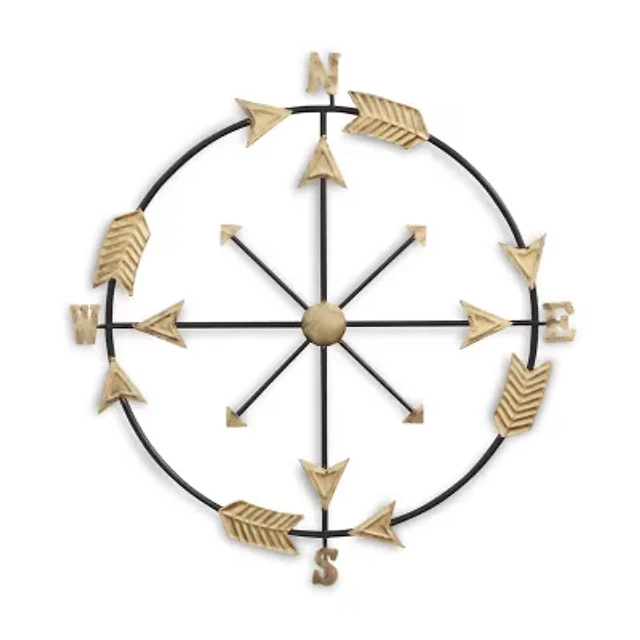 Cheungs Compass With Golden Arrow Accents Metal Wall Art