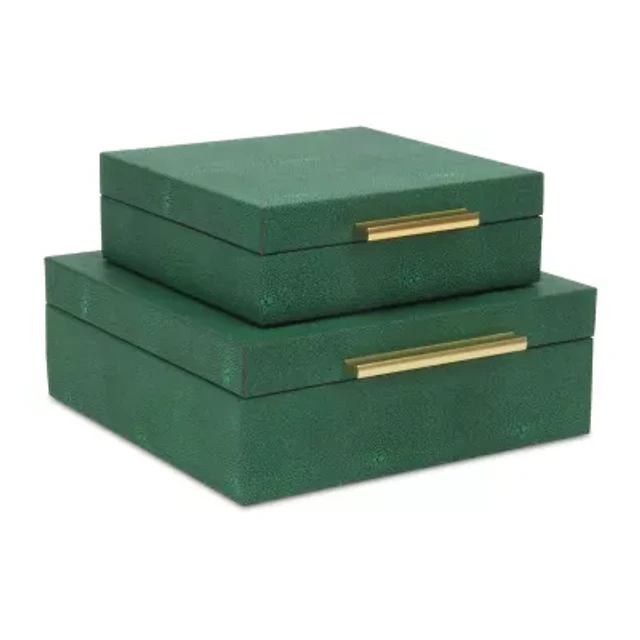 Cheungs Green Faux Shagreen Rectangular 2-pc. Decorative Box