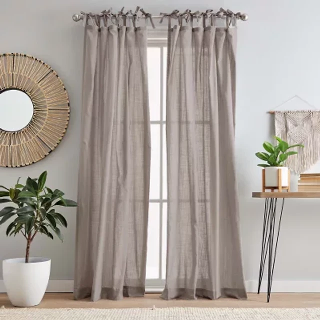 CHF 100% Cotton Tie Top Sheer Set of 2 Curtain Panel