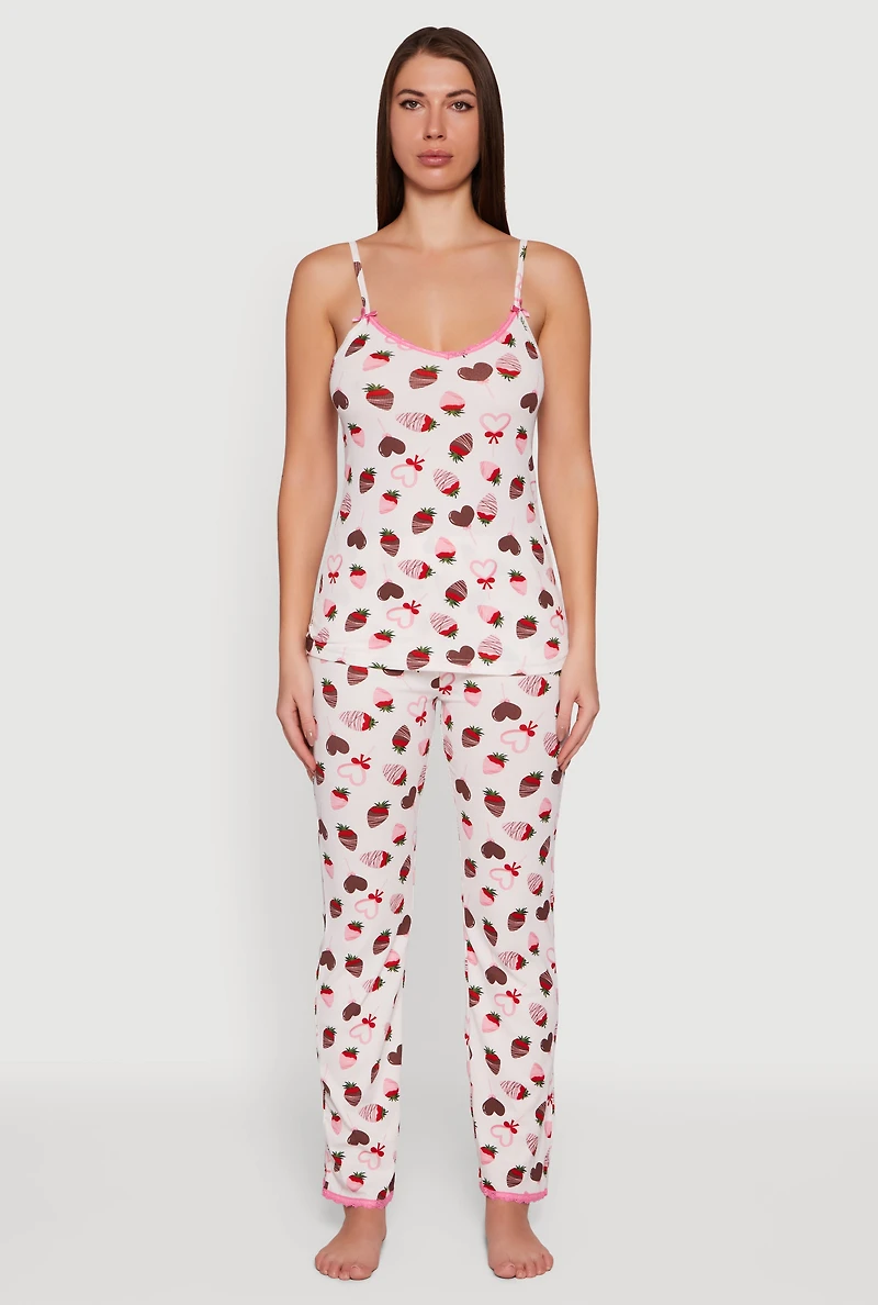 Chocolate Strawberry Print Pajama Cami and Pants