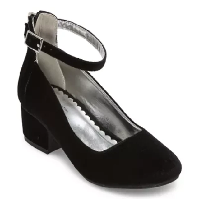 Christie & Jill Layla Little Big Kid Girls Round Closed Toe Block Heel Pumps