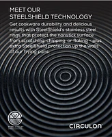 Cook from scratch without the scratches using Circulon's SteelShield 3.5-qt. covered Chef's pan. Designed for today's cooks, the pan's SteelShield technology features steel peaks that protect the nonstick grooves so you never have to worry about scratching the surface with metal utensils. Tri-ply clad stainless steel construction heats up quickly to reduce hot spots on any cooktop, including induction.This product contains (Este producto contiene) Fluoropolymer, Ptfe, Fep, Pfa (PFAS). For more information on PFAS or chemicals in this product, visit (Para obtener mas informacion sobre PFAS o productos quimicos en este producto, visite) https://circulon.com/pages/product-disclosures.