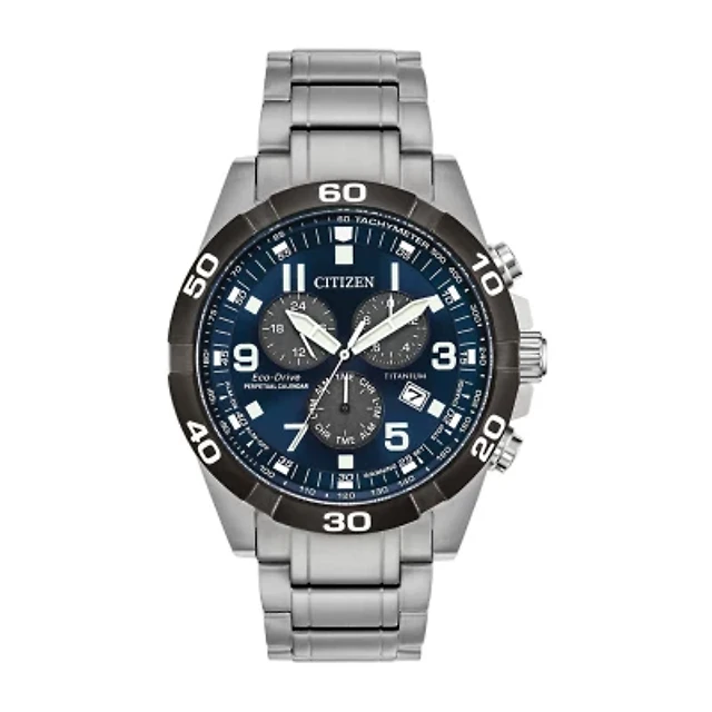 Citizen Men's Chronograph Armor Eco-Drive Silver-Tone Titanium Bracelet Watch 44mm