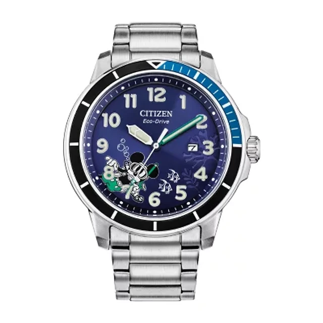 Citizen Mickey Water Sport Mickey Mouse Mens Silver Tone Stainless Steel Bracelet Watch Aw1529-81w