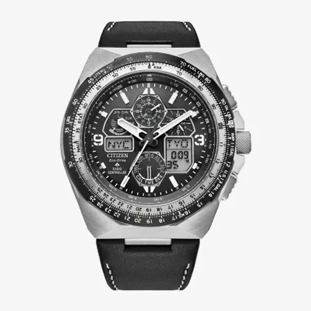 Citizen Promaster Air Mens Chronograph Atomic Time Black Leather Strap Watch Jy8149-05e