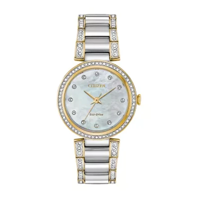 Citizen Quartz Womens Crystal Accent Two Tone Stainless Steel Bracelet Watch Eq0539-56y