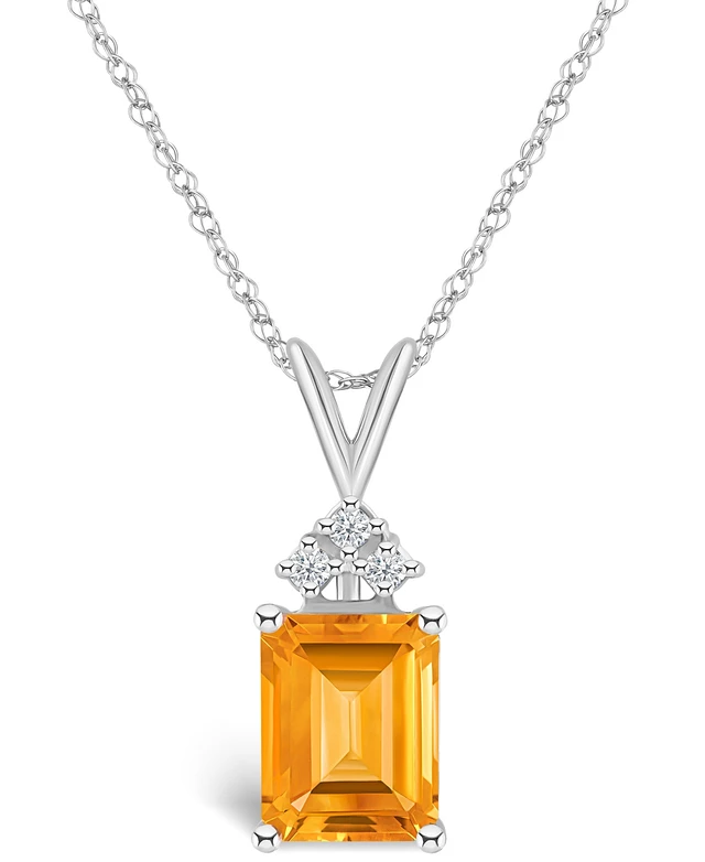 Citrine (2-1/4 ct. t.w.) and Diamond (1/10 ct. t.w.) Pendant Necklace in 14K White Gold or 14k Yellow Gold