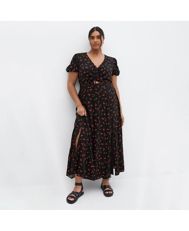 City Chic Plus Aliza Print Pleat Maxi Dress