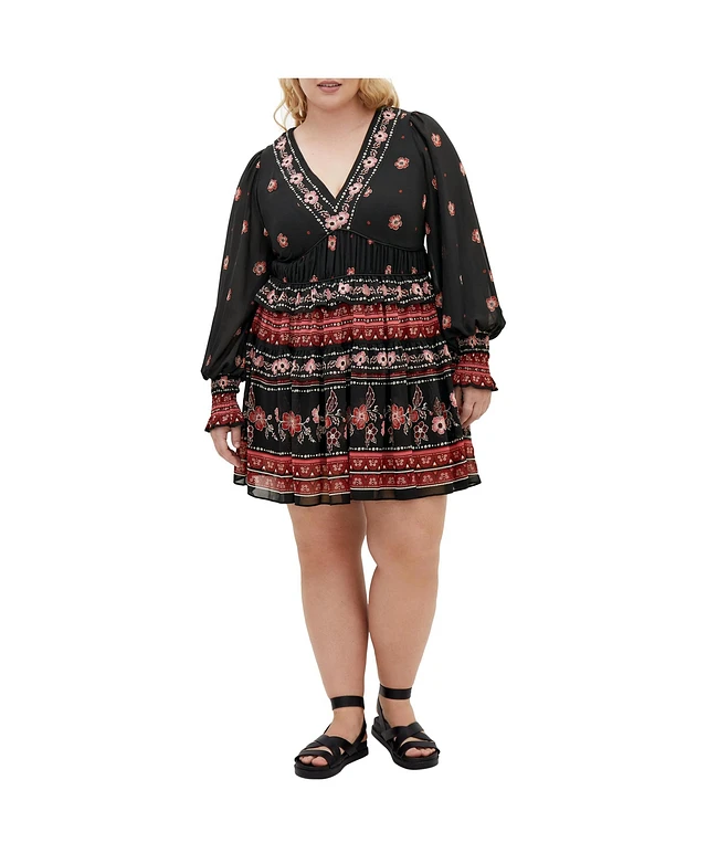 City Chic Plus Size Alannah Mesh Sleeve Mini Dress