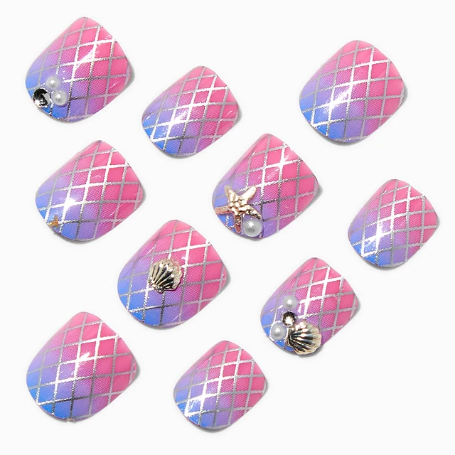 Claire's Club Purple Mermaid Press On Vegan Faux Nail Set - 10 Pack