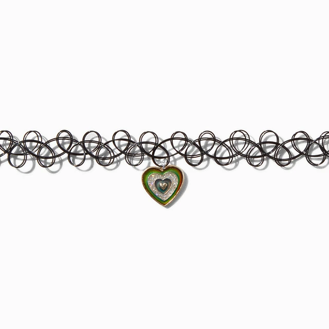 Claire's Club Rainbow Heart Black Tattoo Choker Necklace