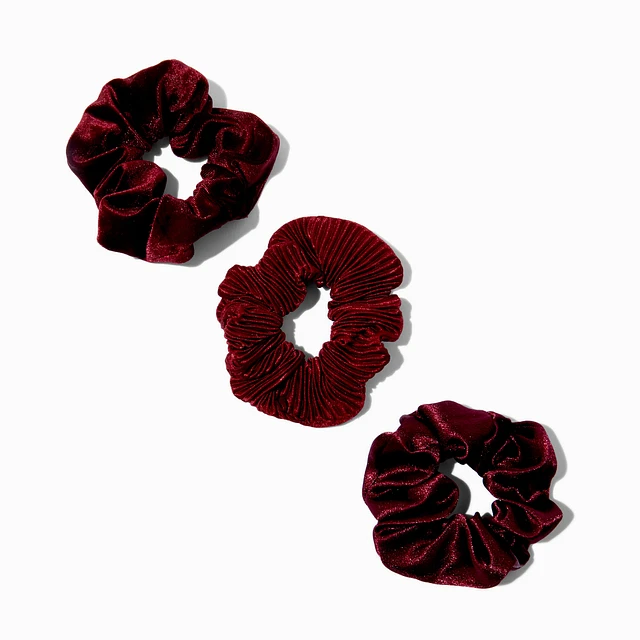 Claret Red Mixed Hair Scrunchies - 3 Pack