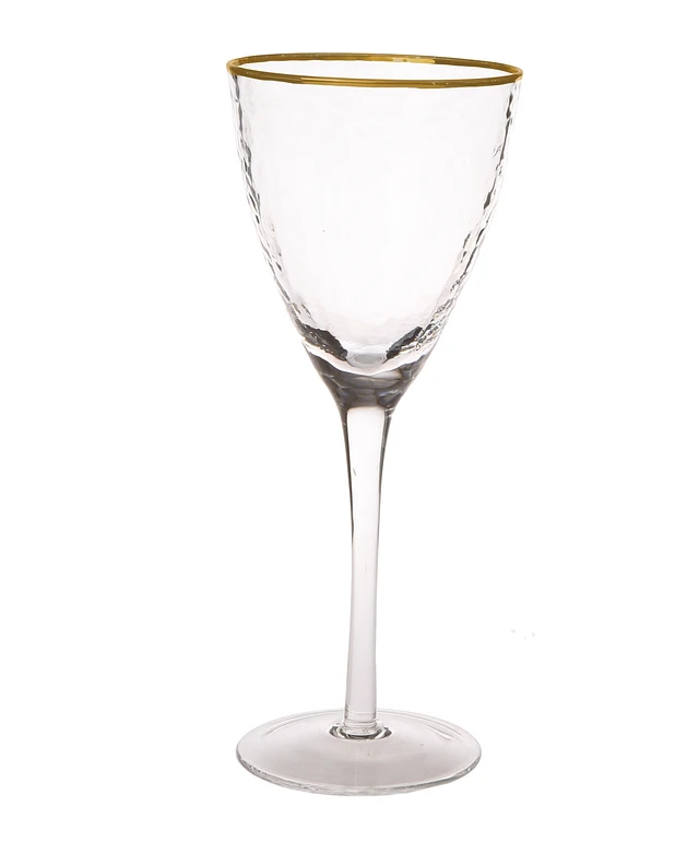 Classic Touch Set of 6 Pebble Glass Wine Glasses with Gold Tone Rim