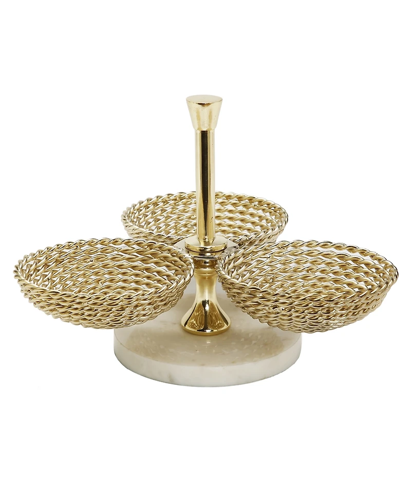Classic Touch Triple Bowl Relish Dish Rope Design and Marble Base