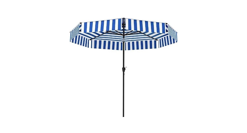 - Keep Shaded: An 8.6 ft outdoor umbrella can keep friends and furniture cool by mounting to a hole in a patio dining table or stand-alone weighted base. The stylish striped design adds a touch of elegance