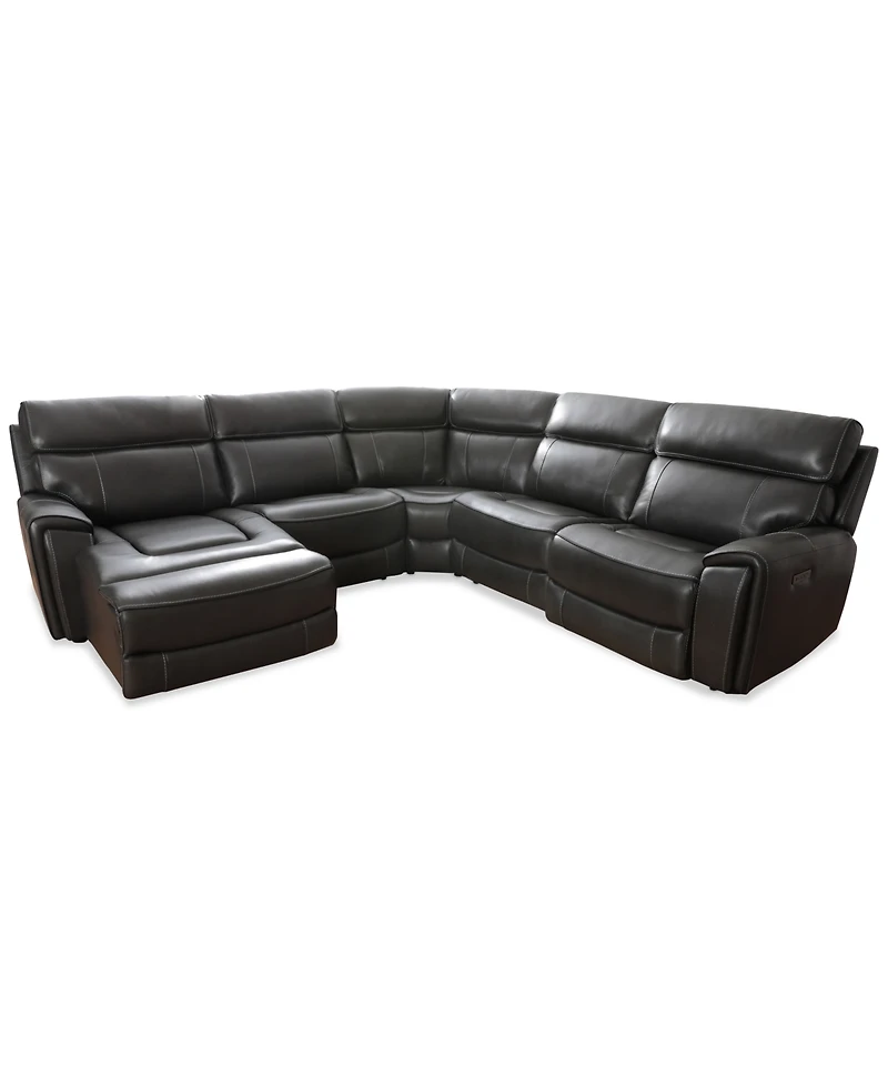 Closeout! Hutchenson 119.5" 5-Pc. Zero Gravity Leather Sectional with 2 Power Recliners and Chaise, Created for Macy's in Ponce, PR