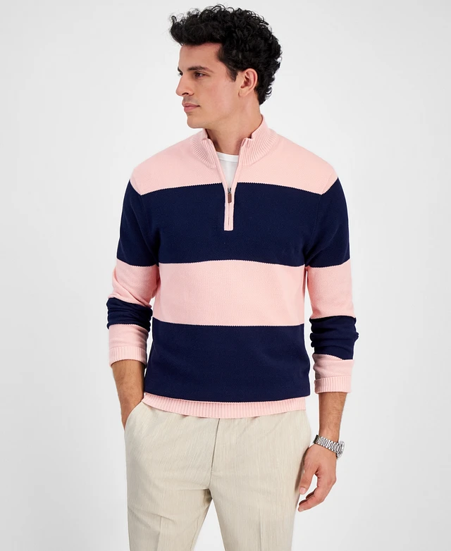 Club Room Men's Bold Stripe Quarter-Zip Sweater, Created for Macy's
