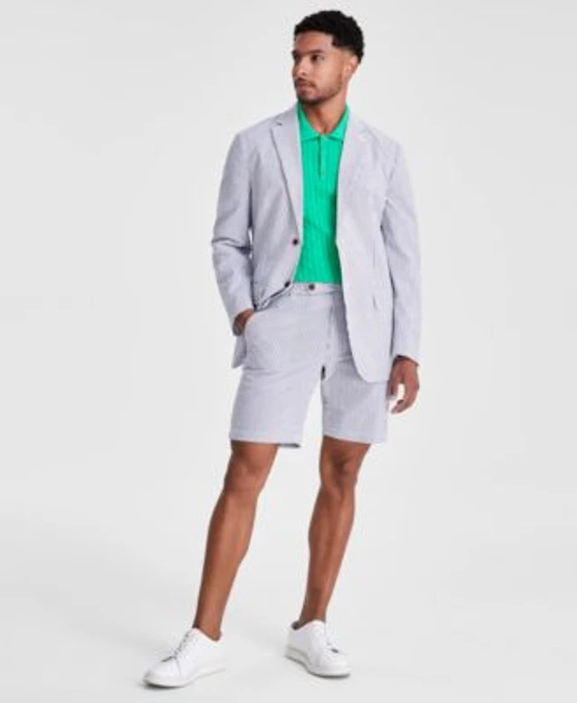 Club Room Mens Regular Fit Seersucker Blazer 9 Seersucker Shorts Sweater Knit Polo Shirt Created For Macys