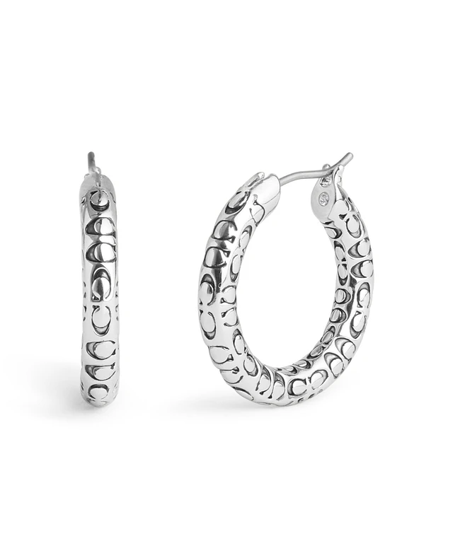 Coach Faux Stone Signature Quilted Hoop Earrings