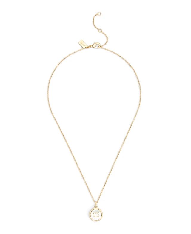 Coach Signature Mother of Pearl Coin Pendant Necklace