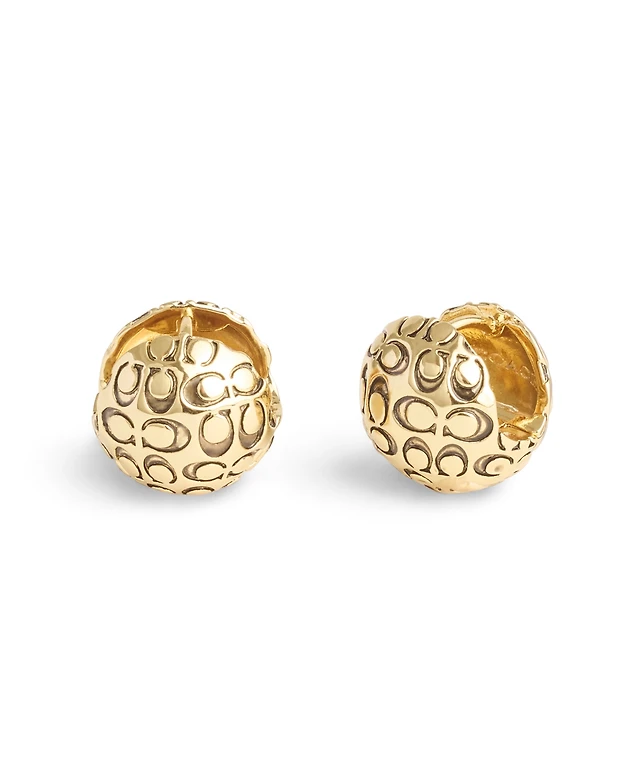 Coach Gold Signature Quilted Cube Chubby Hoop Earrings