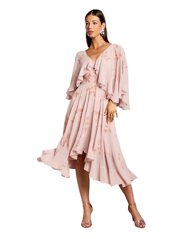 Lara Women's Beaded Midi Dress with Cape Sleeves