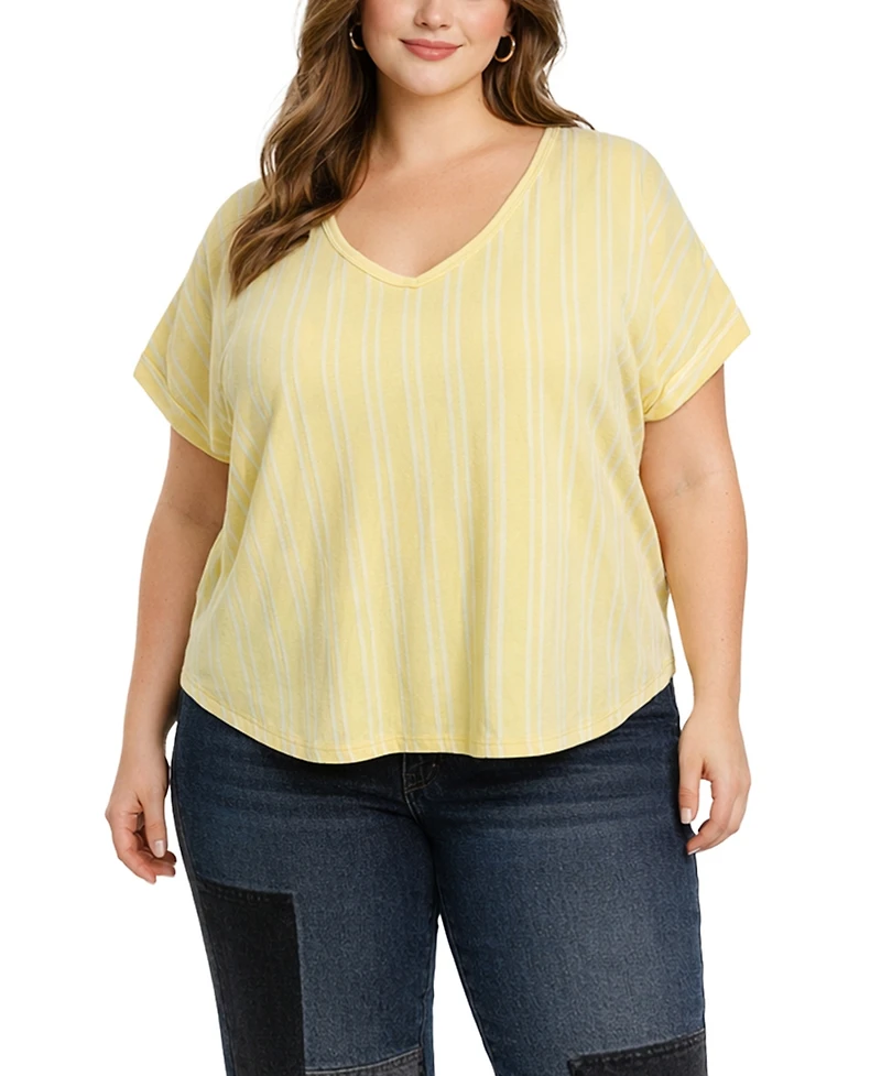 Coin 1804 Plus Vertical Stripe Rolled Sleeve Top in Ponce, PR