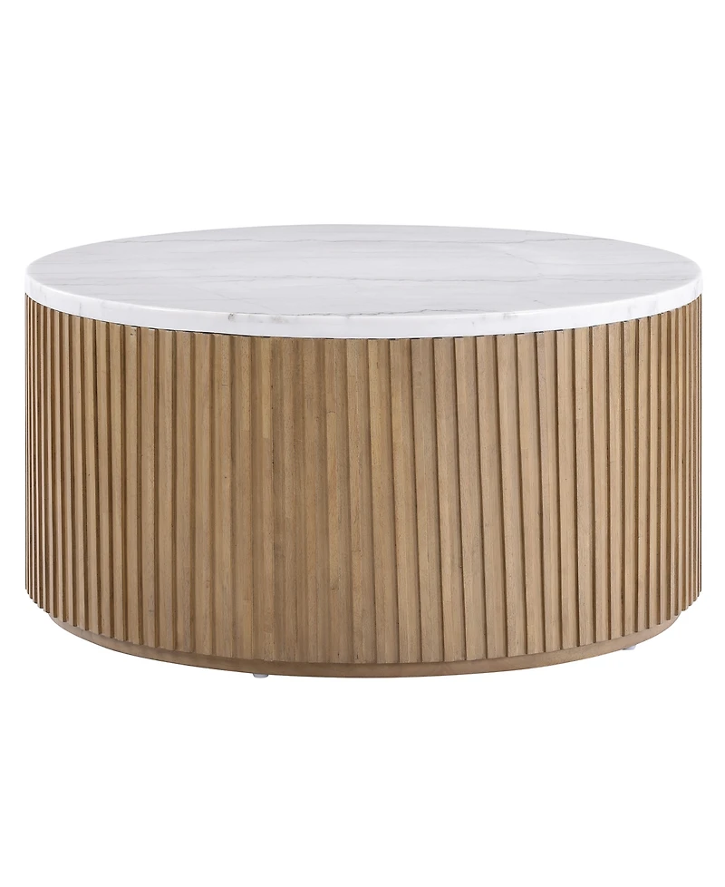 Inspired by art deco and empire styling, the Colby 36"" round white marble top coffee table adds refined elegance to any space. Its lustrous white marble top and reeded base bring timeless sophistication, ideal for those who appreciate sleek design. Featuring casters for easy mobility, this table is perfect for repositioning in front of a sofa or moving for cleaning. The spacious round top offers ample room for decor or essentials, combining luxury, practicality, and versatility to elevate your home's style.