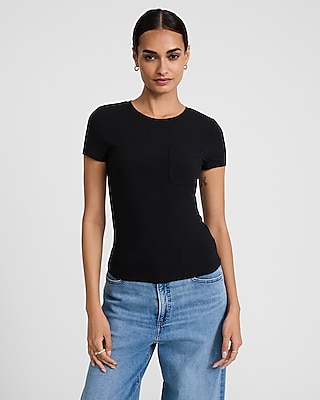Fitted Ribbed Crew Neck Short Sleeve Pocket Tee